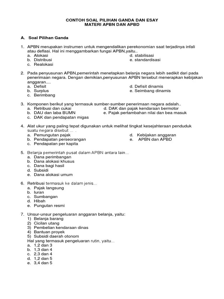 Contoh Soal Essay Tentang Apbn Dan Apbd / Contoh Soal Ekonomi Pendapatan Nasional Pilihan Ganda / Anggaran pendapatan serta belanja daerah (apbd) adalah suatu daftar atau penjelasan mengenai .